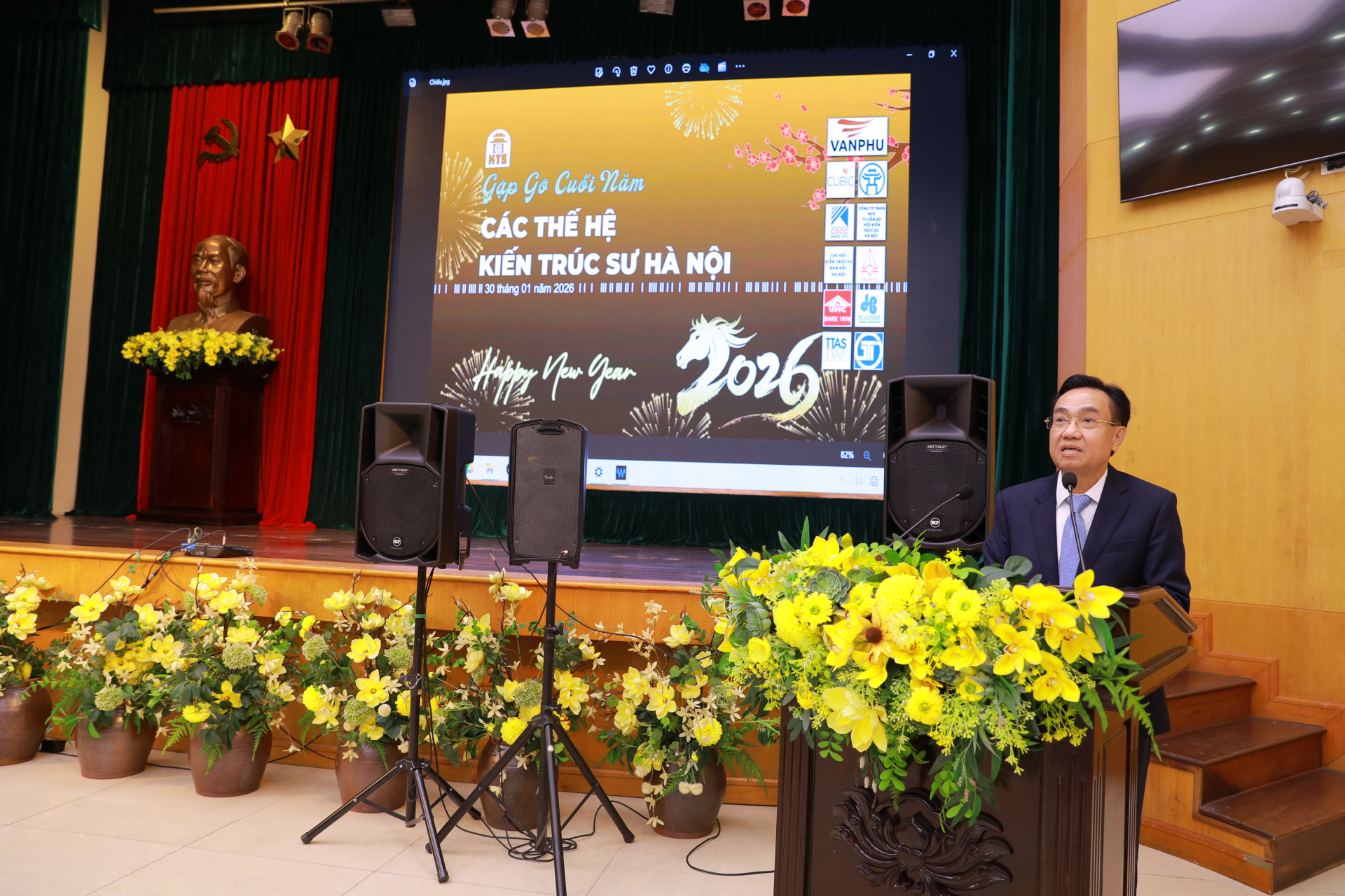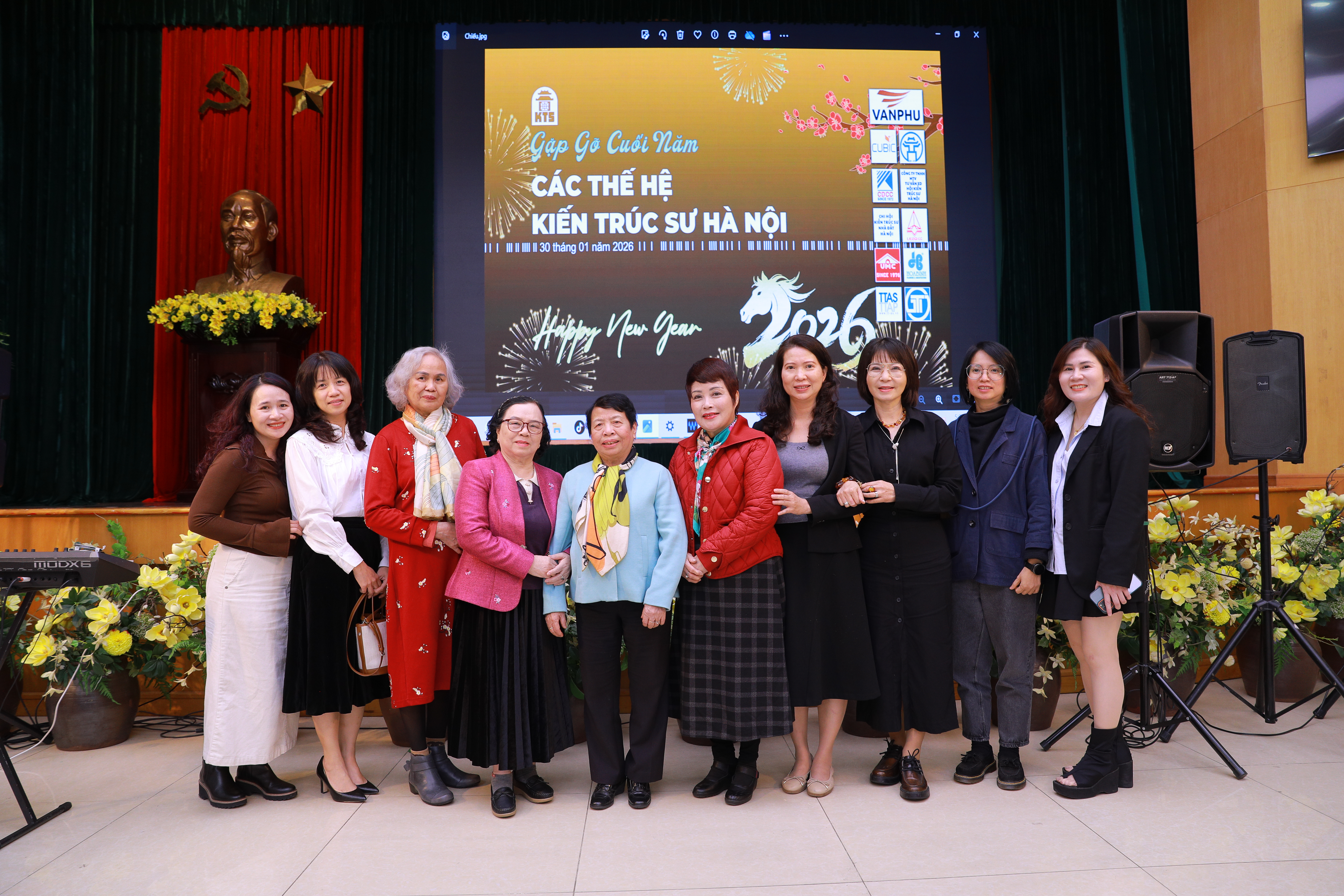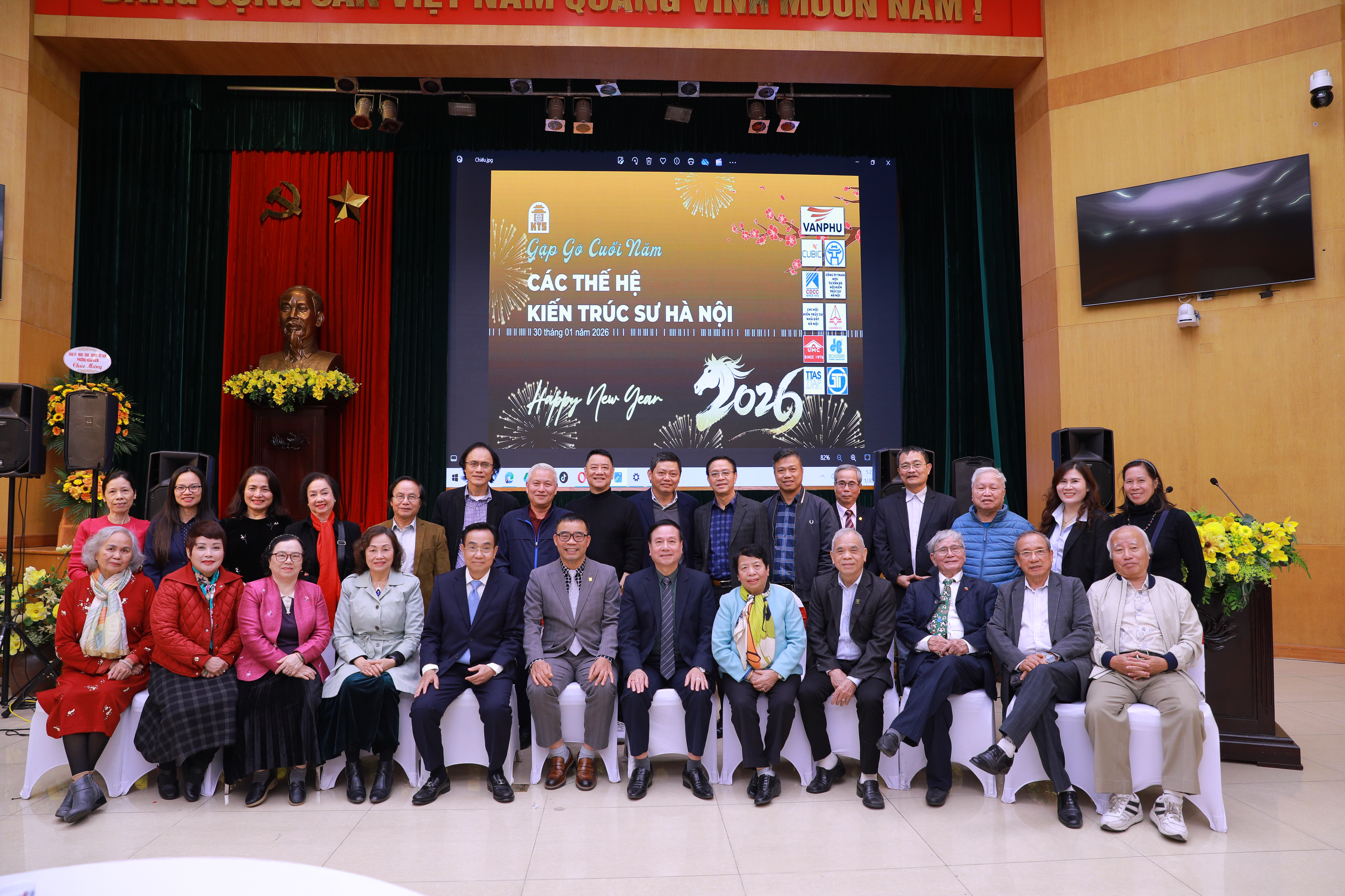 Bữa tiệc không chỉ là dịp để các thế hệ kiến trúc sư cùng nâng ly chúc mừng năm mới 2026, mà còn là không gian mở để kết nối, chia sẻ và trao đổi nghề nghiệp giữa các đồng nghiệp, các chi hội và đơn vị tư vấn – thiết kế. Những câu chuyện nghề, những kỷ niệm gắn bó với Hà Nội, với từng công trình, từng bản vẽ được tiếp nối trong tiếng cười, sự đồng cảm và tinh thần trân trọng lẫn nhau.